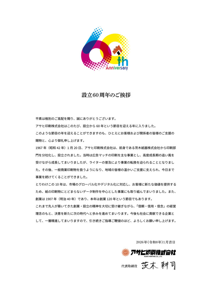 設立60年のご挨拶