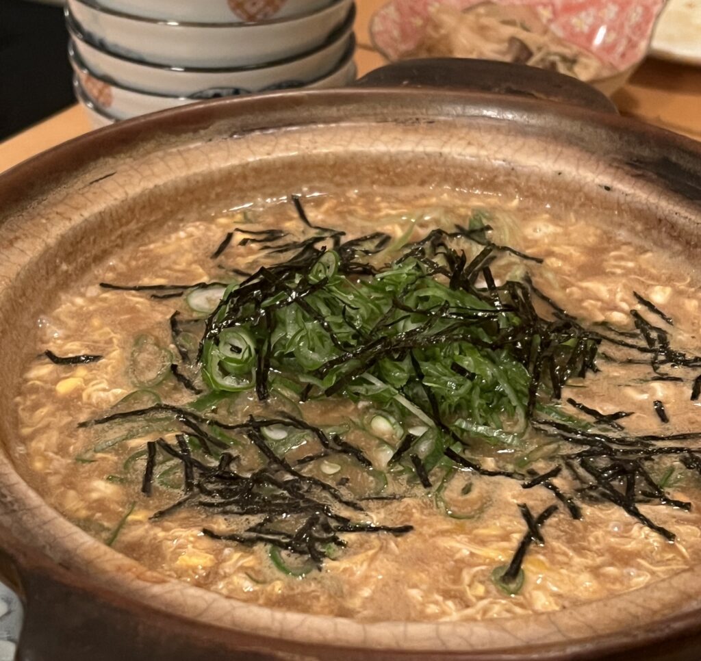↑あんこう鍋のおじや。寒い日ほど、鍋は美味しいですね。