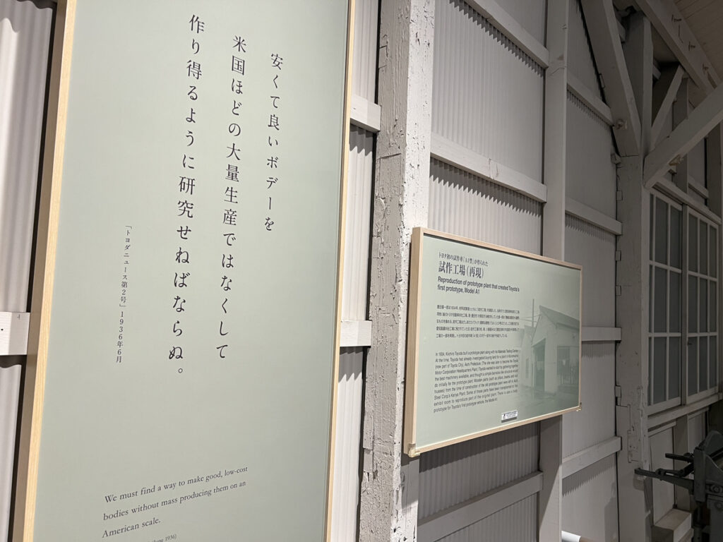 この展示スペースでは、初期の豊田自動車の時代が紹介されていますが、その中でも「改善」を積み重ねていく過程が見て取れます。