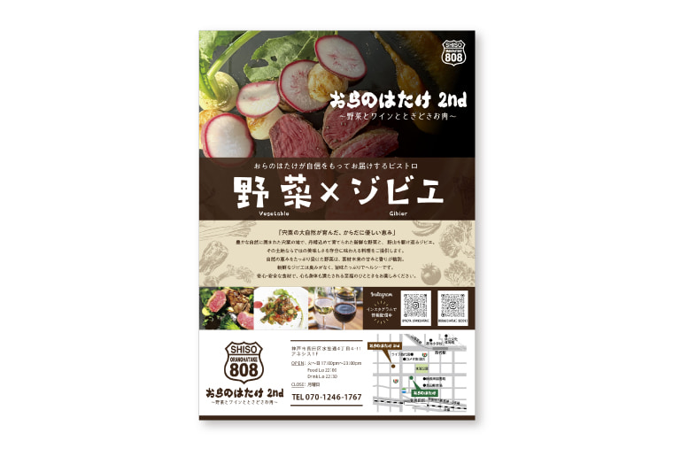 その直営店としてオープンされたのが、野菜とジビエ料理が楽しめる「おらのはたけ2nd~野菜とワインとときどきお肉~」様です。