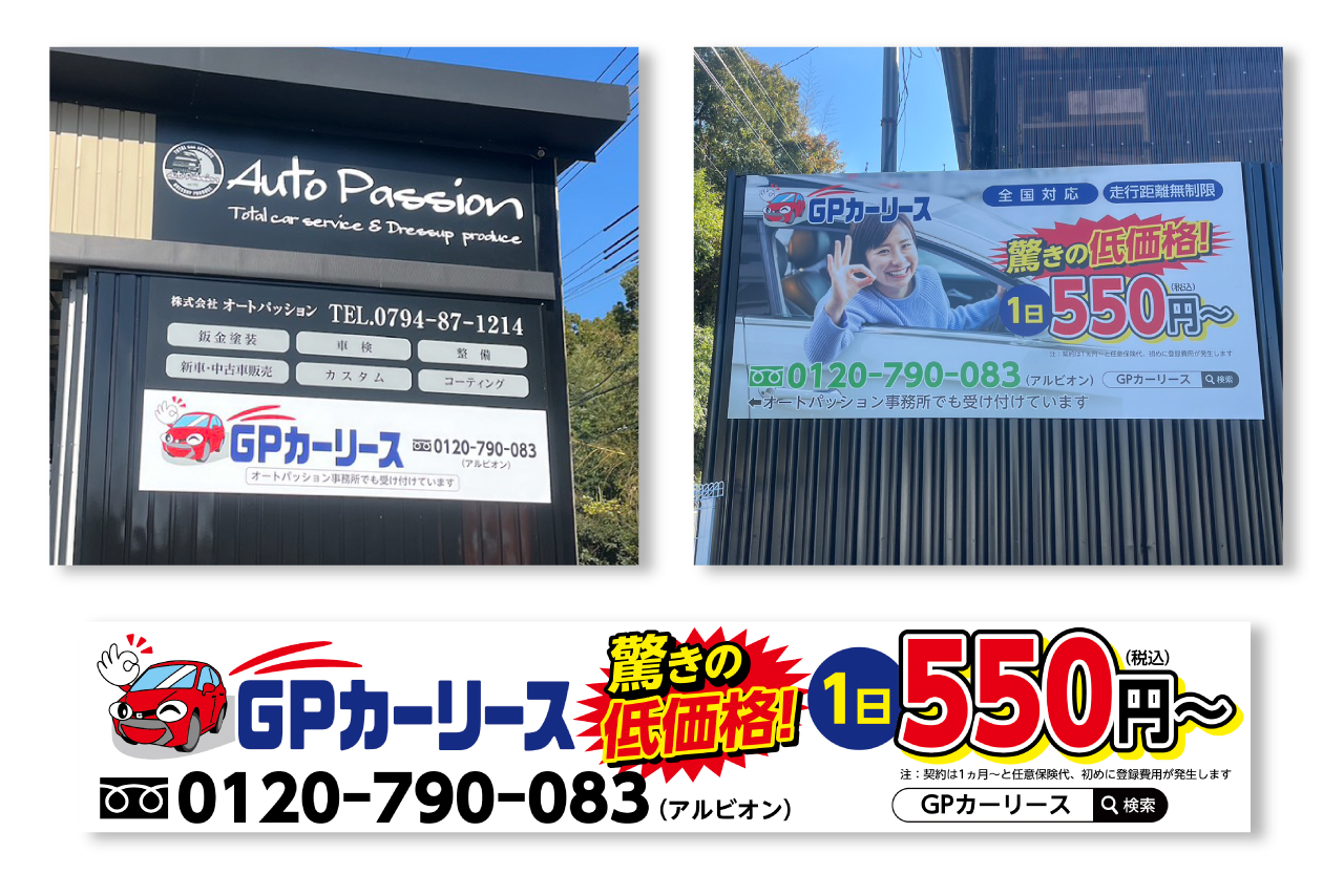 オートパッション様、GPカーリース様の看板を制作いたしました。